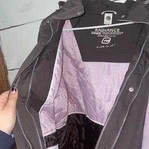 This item is a Free Range Radiance style jacket in great condition. It has double sippers, and buttons to close the jacket. The hood has adjustable strings to secure. The inside is insulated. Very warm jacket.