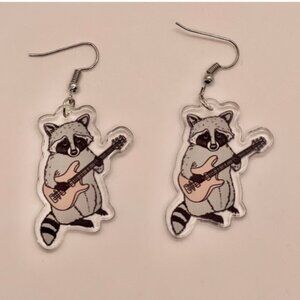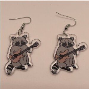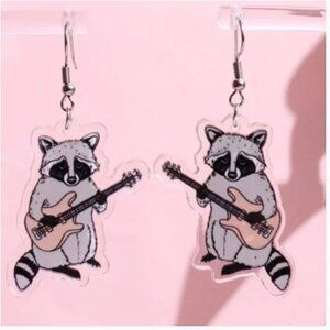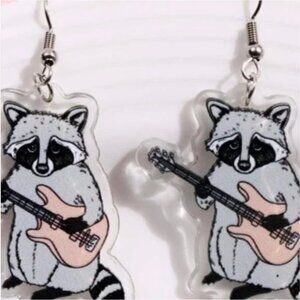 ⭐️❤️ FREE Raccoon Guitar Music Graphic Cartoon Animal Zoo Hipster Chic Earrings