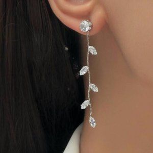 ⭐️❤️ FREE Rhinestone Leaf Boho Drop Vaca Plant Hipster Modern Floral Earrings