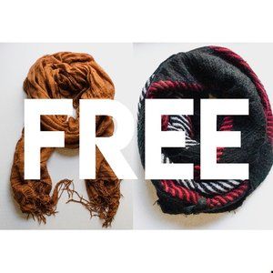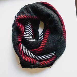 -Steve Madden striped pattern infinity scarf, black, red, white, winter, cozy, warm