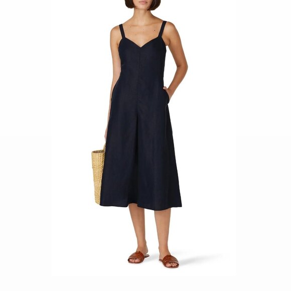 CLUB MONACO - Black/Navy Linen Midi Jumpsuit with Pockets!