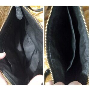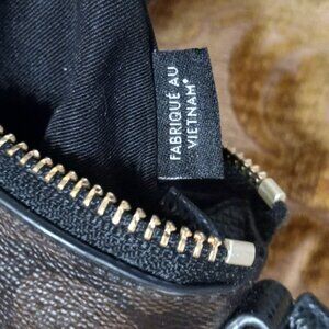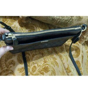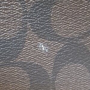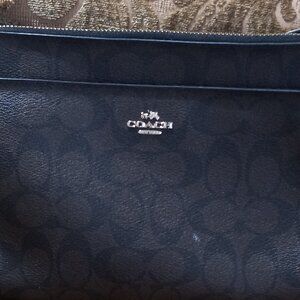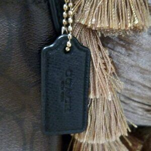 Coach signature canvas shoulder/crossbody bag(no ID tag), brown monogram leather with adjustable strap clean fabric interior, gold hardware with COACH engraved in every piece, the Coach Logo FOB, and the signature horse and carriage with Coach New York gold hardware on the outside of the slip pocket...zipper closure on main pocket...slightly used, no wear, but one mark in front that can be professional touched up. See pictures for details. From a smoke free home.