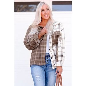 FREE SHIPPING! Plaid Contrast Button Up Shirt Jacket