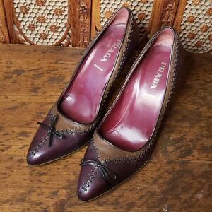 FREE SHIPPING! Vintage Prada Heels Brown Stitched Patchwork size 39.5 two toned