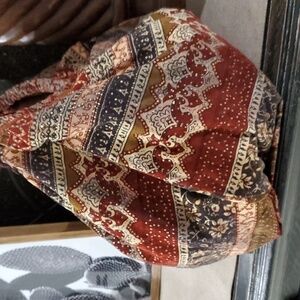 FREE SPIRIT BOHO FABRIC HOBO SACK HANDBAG MAROON BLACK CREAM GOLD SHIMMER