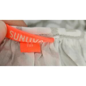 Sunuva Women's Embellished Cotton Light Grey Boho Beach dress sz Medium $129. pit to pit 21 inches. sleeve length 11 inches. pit to bottom 28 inches. geometric pattern with neon pink and soft orange embroidery and mirrored embellishments on the front. tassel embellishments on sleeves. Indian cotton. one shell on front is missing as shown in photo.