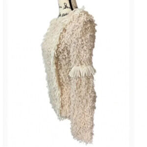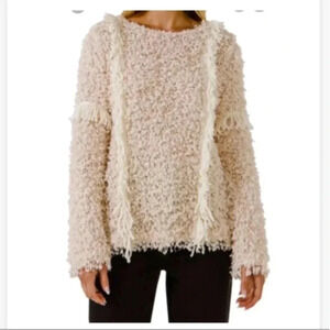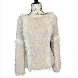 Free the roses sweater cream and tan long sleeve front age shaggy sweater round neck very light stretch excellent condition measurement in pics