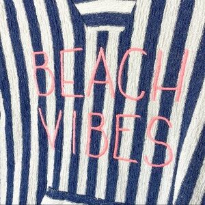 Blue and white stripes with pink ‘Beach Vibes’ print