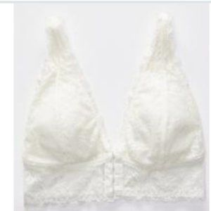 Lace Bralette No Wires color is called Natural. NWT. No Wires. No Poking. No Problem Padded Front. All around elastic. Bust Sized. Bust 36"-38" B/C Front Hook. Adjustable Straps 90 nylon/ 10 spandex Washable.