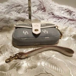 Dooney and Bourke beatiful canvas wristlet with leather accents in used but very good condition.
