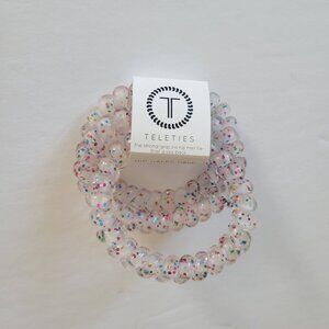 Hold your hair and enhance your style with TELETIES. The strong grip, no rip hair tie that doubles as a bracelet. Strong, pretty and stylish, TELETIES are designed to withstand everyday demands while taking your look to the next level. Sold with three hair ties in one pack. The large size is 6.5cm wide x 1cm thick.