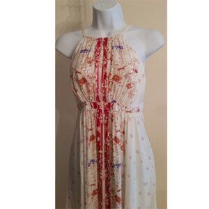 Gorgeous free people "caught in a moment" floral boho beach greek godgess flowy airy halter dress with open back. Lined. Cream color.