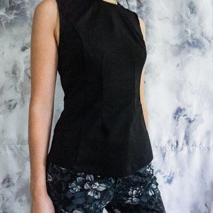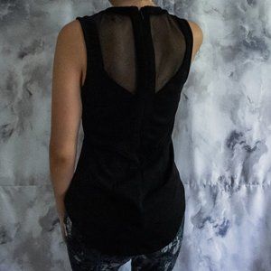 Beautiful black blouse with mesh panels. Forms waist beautifully