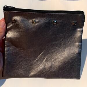 Ipsy Pewter Studded Cosmetic Bag Gray Silver Studs Metallic Sheen Pre-Owned