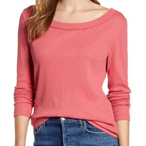 FREE with any item - Nordstrom Caslon Long Sleeve Rib Tee in Red Holly