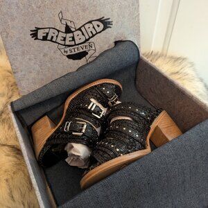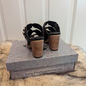 FREEBIRD BLACK SNAKE LEATHER SANDALS SIZE 6 NWOT. These sandals have never been worn. They are a beautiful Black snake leather, I still have them in the box. Let me know if you have any questions. Please see pictures for the condition of the sandals.