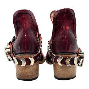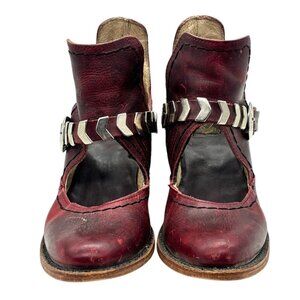FREEBIRD BY STEVEN Blade Harness Ankle Bootie 6 Western Belt Burgundy Distressed