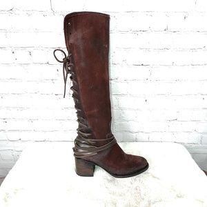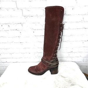 |•FREEBIRD BY STEVEN•| 'Coal' Distressed Burgundy Suede Full Lace Up Back Boots