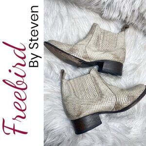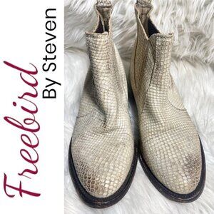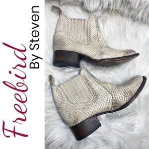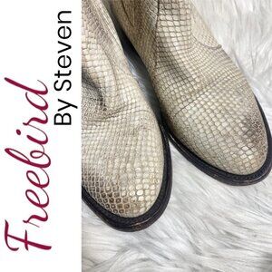 FREEBIRD BY STEVEN Lasso White Snakeskin Ankle Boot Distressed Cowgirl Western, Size 6