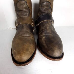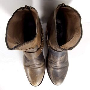 FREEBIRD BY STEVEN WOMEN'S SANTIAGO SIZE 6 Gray ANKLE DISTRESSED HARNESS BOOTS.
