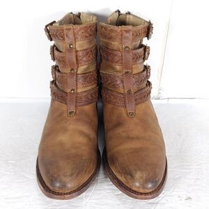 FREEBIRD BY STEVEN Women's Roper US 9M Brown Leather Distressed Strappy Booties .