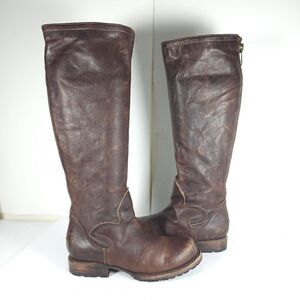 FREEBIRD BY STEVEN WOMEN'S HAVN US6 BROWN LEATHER DISTRESSED BACK ZIP TALL RIDING BOOTS.