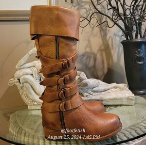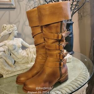 FREEBIRD Risky Boots Wheat Strap Buckle Leather Distressed Handmade Designer #5