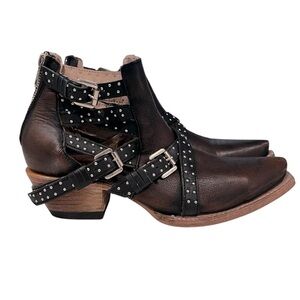 FREEBIRD Wasp NWOB Brown & Black Studded Leather Snip Toe Western Boots Size 7