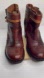 LION Cognac Distressed Leather Braided Buckle Booties.