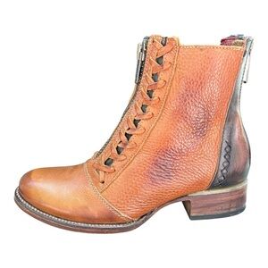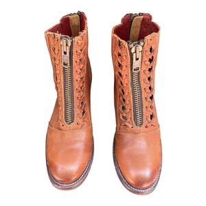 FREEBIRD by Steven Wales Ankle Boots Size 7 Brown Zipper Lace Up Round Toe Block