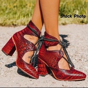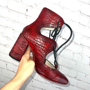 🚫🚫SOLD!🚫|•FREEBIRD🦅BY STEVEN•| GORGEOUS Joyce Red Croco Lace Up Ankle Bootie