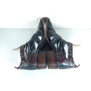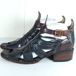 FREEBIRD BY STEVEN Women's Arrow US9 Black Distressed Leather Strappy Sandals .