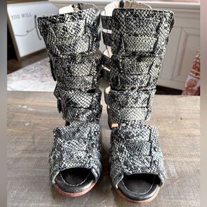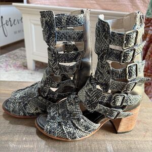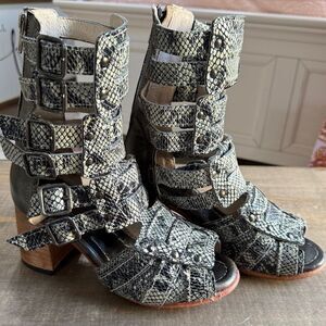 Step out in style with these chic snakeskin gladiator sandals. Perfect for adding a bold and sexy touch to any outfit.