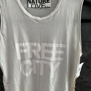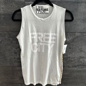 FREECITY Women's Str8up Golden Pins Sleeveless T-Shirt, Magical White Rabbit, NWT size XS