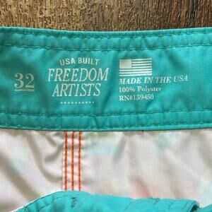 FREEDOM ARTISTS Palm Tree Graffiti 80s Inspired Swim Shorts MADE in USA SZ 32