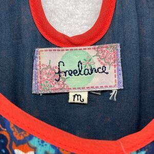 FREELANCE Dress M Mix Print Scoop Neck Cutaway Sundress Boho Sleeveless Blue