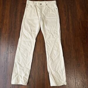 FREENOTE CLOTH Belford Straight Jeans Mens Sz 36 Ecru Denim Button Fly Work M3856