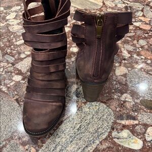 Brown Leather Strappy Ankle Boots