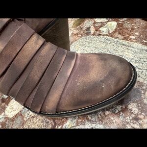 Pre-owned with visible wear on soles and light distressing to leather consistent with use. Structurally sound and ready-to-wear.
