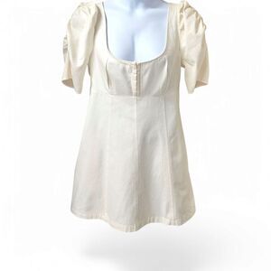 Women's Ivory Puff Sleeve Denim Mini dress Large