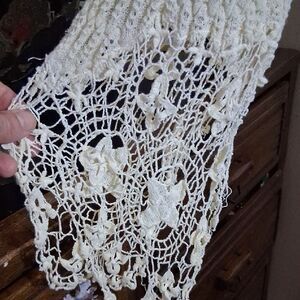 Elegant cream crochet top with long sleeves. Perfect for layering.