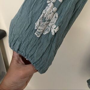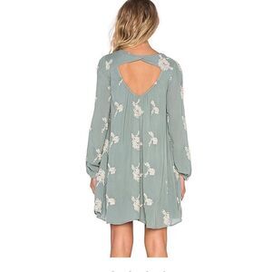 FREE PEOPLE Emma's Embroidered Dress in Misty Green Back Cut Out Detail SZ SP
