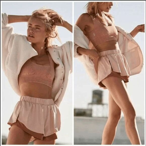 FREE PEOPLE FP MOVEMENT Women's Run For It Shorts Rusted Coral Combo size Small