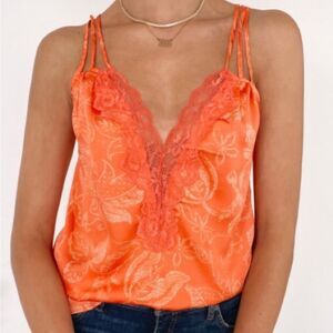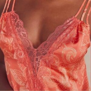 FREE PEOPLE INTIMATELY NWT LADIES CAMI IN CORAL COMBO WITH SOME LACE DETAILING AND TRIPLE SPAGHETTI STRAPS THIS CAMI IS ONE OF A KIND AT THE MSRP PRICE OF $ 58
