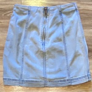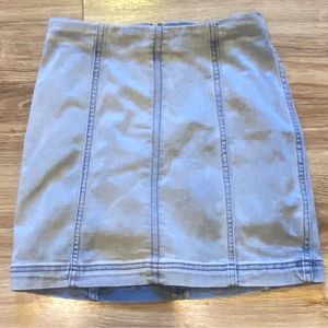 This BEST SELLER Denim mini skirt has a super stretchy fit with exposed seam detailing and a zip closure in the back. It is super flattering and would look great paired with any top and this acid wash is the perfect choice for spring or summer! Preowned