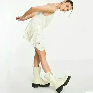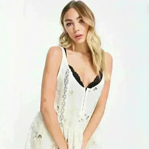 FREE PEOPLE Mini Give Me A Little Lace Insert Slip Dress in Ditsy Pattern