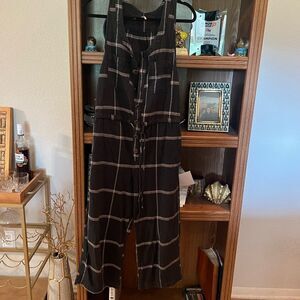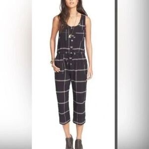 Free people plaid black dark grey sleeveless cropped gauzy jumpsuit. Excellent condition.