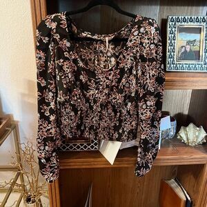 Free people Santiago black brown blouse in black combo. Excellent condition.