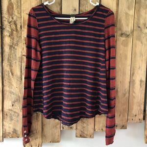 FREE PEOPLE We The Free Burnt Red & Blue Mix It Stripe Tee Size Extra Small