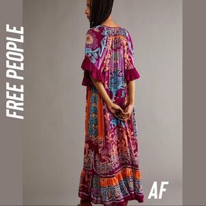 FREE PEOPLE BACK TO BARCELONA KAFTAN MAXI DRESS VIOLET COMBO NWT